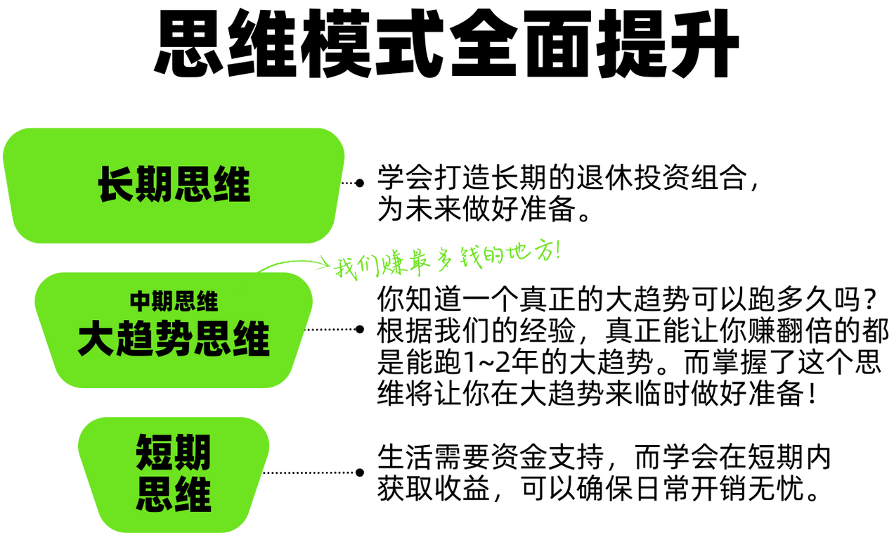 课程结束后,你将直接掌握未来6个月爆发力最强的投资方向,我们会带你看清: