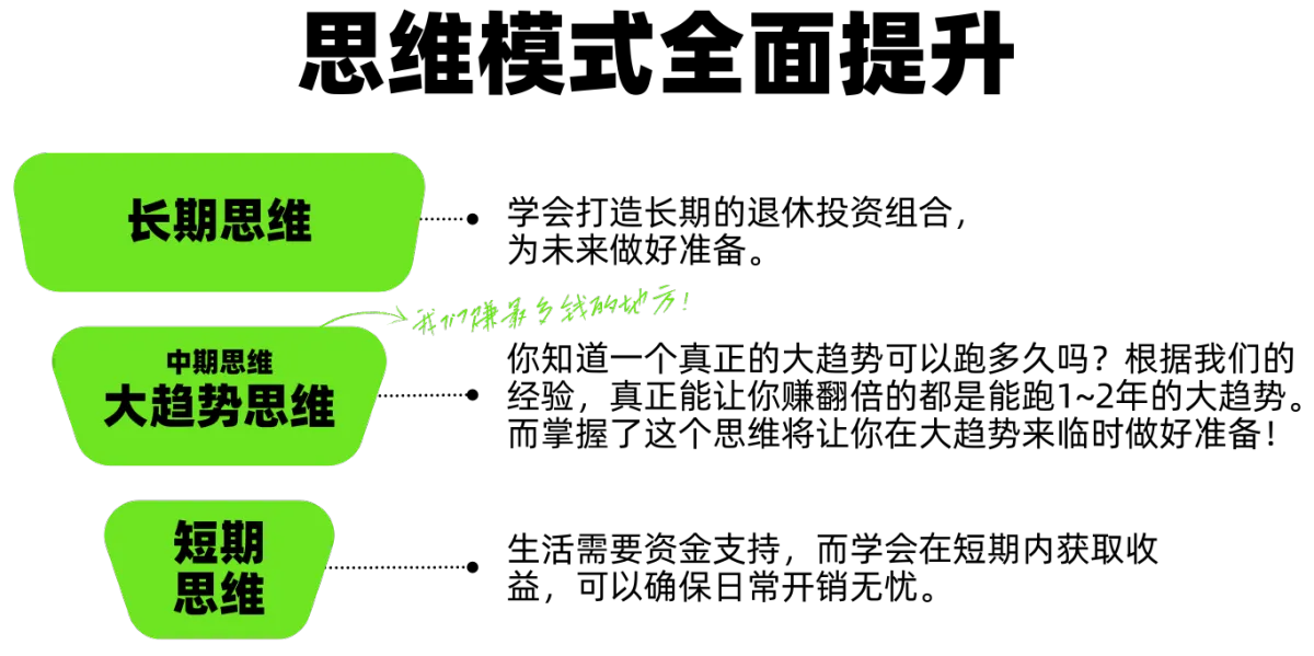 课程结束后,你将直接掌握未来6个月爆发力最强的投资方向,我们会带你看清: